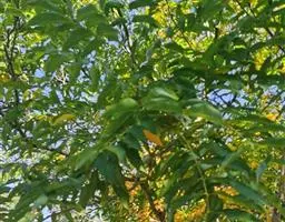 叶具羽状3小叶;托叶小,卵状披针形,长2-3毫米;叶柄长1.5-5厘米,上面具浅沟,下面具细纵棱,略被短柔毛;小叶纸质,披针形至椭圆形,长5-10厘米,宽1.5-3厘米,先端渐尖或急尖,常有细凸尖,上面被极短的灰白色短柔毛。下面较密,呈灰白色,有不明显的黄色腺点;小托叶极小;小叶柄长1-2毫米,被毛。