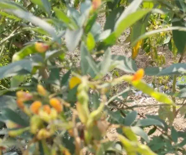 木豆(学名:Cajanus cajan (Linn.) Millsp.)是豆科,木豆属直立灌木,高可达3米。多分枝,棱叶具羽状;托叶小,卵状披针形,叶柄长面具浅沟,下面具细纵棱,小叶纸质,小托叶极小;小叶柄被毛。总状花序花数朵;苞片卵状椭圆形;花萼钟状,裂片三角形或披针形,花冠黄色,旗瓣近圆形,子房被毛,有胚数颗,花柱线状,无毛,柱头头状。荚果线状长圆形,种子近圆形,种皮暗红色,2-11月开花结果。