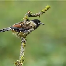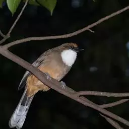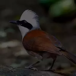 黑顶噪鹛:中型鸟类,体长24-26厘米。前额、脸、颏、喉黑色,头顶黑褐沾棕或深棕橄榄褐色,…