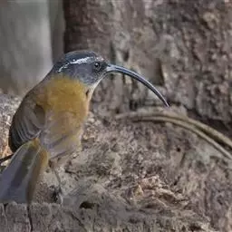 剑嘴鹛:中型鸟类,体长21-22厘米。嘴特别细长而向下弯曲,头顶和头侧烟灰色具长而窄的白色眉纹,…