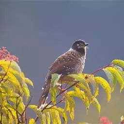 叫声:带回音的嘁喳嘟声及欢快的哨音鸣声chi~uwi、chi~uwi或chi~uwi~chiu。