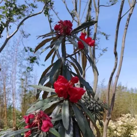 马缨杜鹃是杜鹃花科杜鹃花属的常绿灌木或小乔木,高可达1-7米。树皮淡灰褐色;幼枝被白色绒毛;叶革质,…
