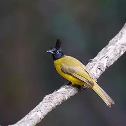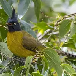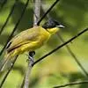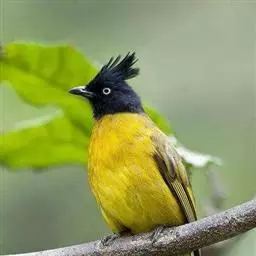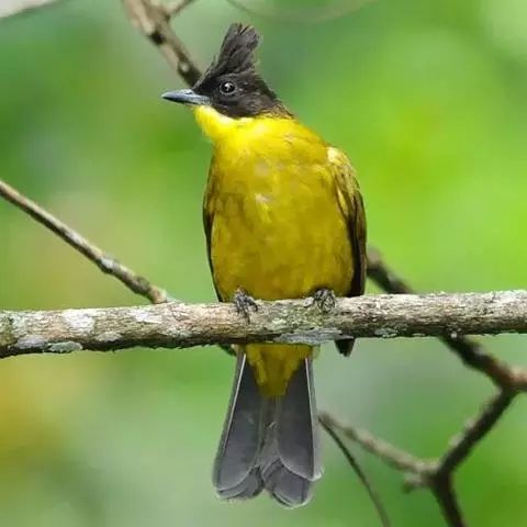 黑冠黄鹎:体长18-21厘米,是一种中等体型偏黄色鹎。整个头、颈、颏、喉黑色,头顶有显著直立的羽冠,…