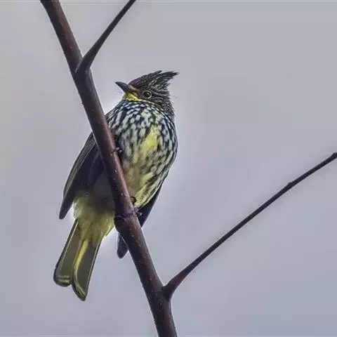纵纹绿鹎,是鹎科鹎属的一种动物,是体型中等大小鸟类,体长20-24厘米。头绿褐色具明显的冠羽,…
