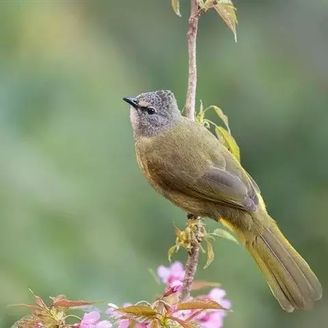 黄绿鹎,小型鸟类,体长19-22厘米。额至头顶暗褐具灰色羽缘,眼先黑色,…