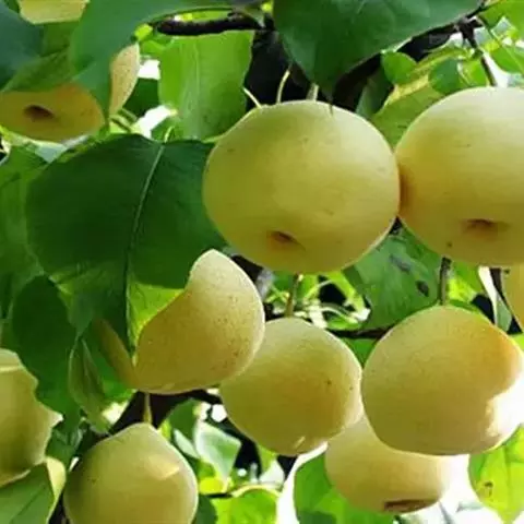 京白梨:果尖扁圆球形,重75-117克。果皮淡黄色,光滑,细而薄,果点细小。果肉白色,初采下时质硬,经后熟后变软。味香,果汁多,细细胞少。原产北京附近,主要分布于北京及河北昌黎一带。