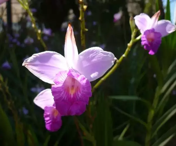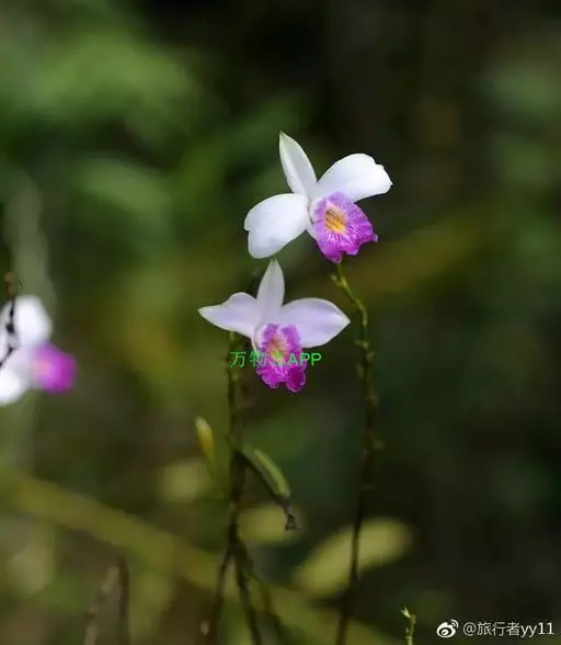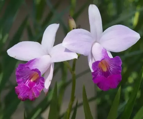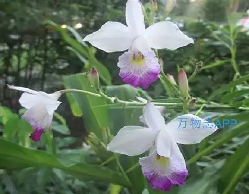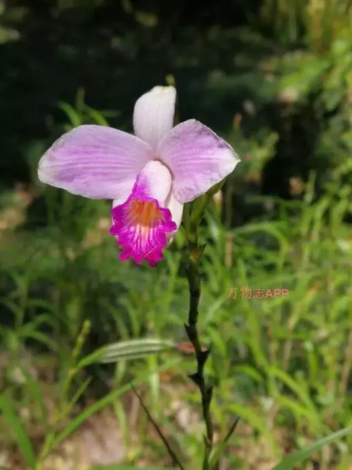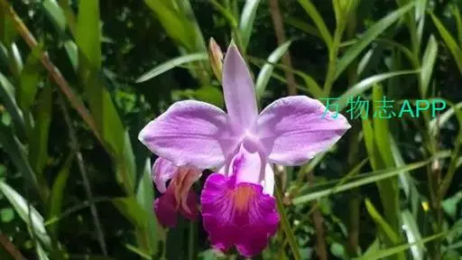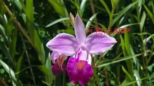 竹叶兰(学名:Arundina graminifolia (D. Don) Hochr.):草本植物。植株高40-80厘米,有时可达1米以上;地下根状茎常在连接茎基部处呈卵球形膨大,貌似假鳞茎,直径1-2厘米,具较多的纤维根。茎直立,常数个丛生或成片生长,圆柱形,细竹秆状,通常为叶鞘所包,具多枚叶。叶线状披针形,薄革质或坚纸质。花序通常长2-8厘米,总状或基部有1-2个分枝而成圆锥状,具2-10朵花;花粉红色或略带紫色或白色;花瓣椭圆形或卵状椭圆形,与萼片近等长。花果期为9-11月或1-4月。