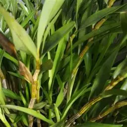 终年都有,高温多雨季节更为猖撅,而以建兰感染尤多。病斑先从叶尖向根茎处延伸,初为褐色,然后逐渐扩大增多,出现许多干黑点,严重时导致整株死亡。防治方法:除积极改菩环境条件外,在发病期内,可先用50%甲基托布津可湿性粉剂800-1500倍液喷治,每7-10天一次;然后再辅以1%等量式波尔多液,每半月一次,连续喷3-5次。