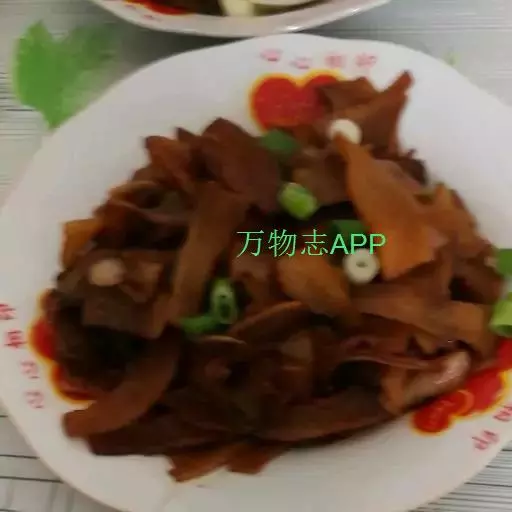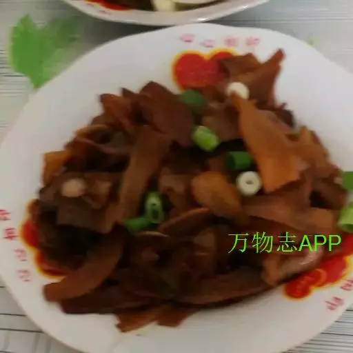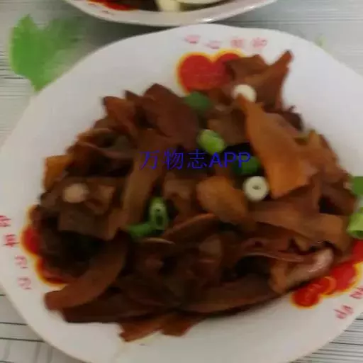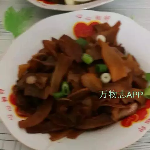 (5)在炒的肉里放香菇﹑石耳﹑青椒炒后﹐放在冲白面的水里煮熟﹐并与炒好的竹笋混在一起盛在碗里。