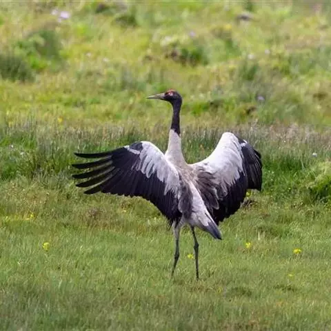 黑颈鹤:是鹤科、鹤属的大型涉禽,体长110-120厘米,体重4-6千克。颈、脚甚长,通体羽毛灰白色,…