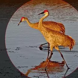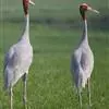 白鹤(学名:Grus leucogeranus):是大型涉禽,略小于丹顶鹤,体长130-140厘米。站立时通体白色,胸和前额鲜红色,嘴和脚暗红色;飞翔时,翅尖黑色,其余羽毛白色。虹膜棕黄色,嘴、脚暗红色。2龄脚变红色,3龄嘴亦变为红色。