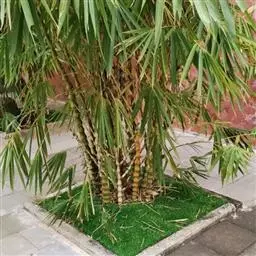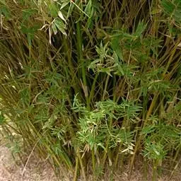 佛肚竹(学名:Bambusa ventricosa McClure):为禾本科丛生型竹类植物。幼秆深绿色,稍被白粉,老时转榄黄色。秆二型:正常圆筒形,高7-10米,节间30-35厘米;畸形秆通常25-50厘米,节间较正常短。箨叶卵状披针形;箨鞘无毛;箨耳发达,圆形或卵形至镰刀形;箨舌极短。