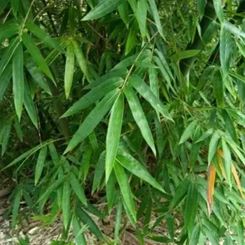 凤尾竹 Raeusch. ex Schult. ’Fernleaf’ R. A. Young)是禾本科,簕竹属孝顺竹的变种。植株较高大,杆高可达6米,竿中空,小枝稍下弯,下部挺直,绿色;竿壁稍薄;节处稍隆起,无毛;叶鞘无毛,纵肋稍隆起,背部具脊;叶耳肾形,边缘具波曲状细长繸毛;叶舌圆拱形,叶片线形,上表面无毛,下表面粉绿而密被短柔毛,小穗含小花,中间小花为两性;外稃两侧稍不对称,长圆状披针形,先端急尖;内稃线形,脊上被短纤毛,花药紫色,子房卵球形,羽毛状。成熟颖果未见。原产中国,华东、华南、西南以至台湾、香港均有栽培。凤尾竹喜温暖、湿润和阳光充足的环境,耐寒。宜土层深厚、肥沃、疏松的微酸性壤土。该种观赏价值较高,宜作庭院丛栽,也可作盆景植物。全草或根入药,味淡、微苦,性寒,有清热利湿、凉血止血、消肿解毒功效,可治痢疾、泄泻等多种病症。凤尾