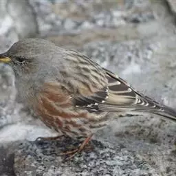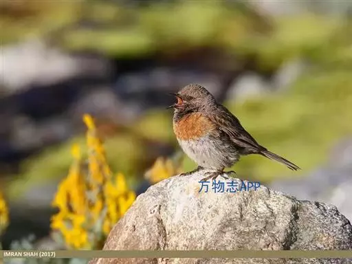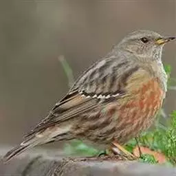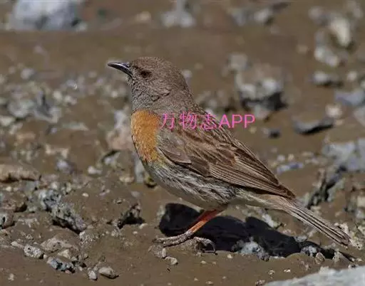 鸲岩鹨(学名:Prunella rubeculoides)是岩鹨科、岩鹨属小型鸟类,体长15-17厘米。头灰棕色,背、肩、腰棕褐色具黑色纵纹,两翅褐色,翅上有白色翅斑。颏、喉沙褐或灰色,胸锈棕色,在喉胸之间有一不明显的黑色颈圈,其余下体白色。特征明显,野外不难识别。虹膜褐色,嘴黑色,跗踱肉褐色。
