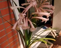 多年生常绿球根植物,株高约20~30cm,地下鳞茎球形。叶线形,绿色。花自地下鳞茎抽生而出,细长,花呈长筒状,略低垂,每个花枝着花8朵左右,有黄、橙红、白、粉红等色。花期冬春,果期春季。偶尔可以在花市看见垂筒花的切花供应,盆栽不多见。