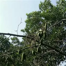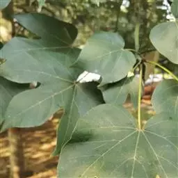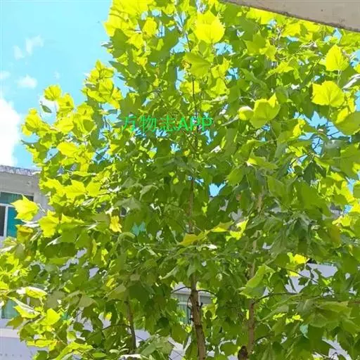 中国梧桐叶图4 梧桐树常用播种法繁殖,扦插、分根也可。秋季果熟时采收,晒干脱粒后当年秋播,也可沙藏至翌年春播。条播行距25厘米,覆土厚约1.5厘米。每亩播量约15公斤。沙藏种子发芽较整齐,播后4至5周发芽。干藏种子常发芽不齐,可在播前先用温水浸种催芽。正常管理下,当年生苗高可达50厘米以上,翌年分栽培养。三年生苗即可出圃。栽植地点宜选地势高燥处,穴内施入基肥,定干后,用蜡封好锯口。注意梧桐木虱、霜天蛾、刺蛾等虫害,可用石油乳剂、敌敌畏、乐果、甲胺磷等防治。在北方,冬季对幼树要包扎稻草绳防寒。入冬和早春各施肥一次。