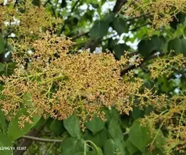 中国梧桐也是一种优美的观赏植物,点缀于庭园、宅前,也种植作行道树。叶掌状,裂缺如花。夏季开花,雌雄同株,花小,淡黄绿色,圆锥花序顶生,盛开时显得鲜艳而明亮。民间传说,凤凰喜欢栖息在梧桐树上,李白也有“宁知鸾凤意,远托椅桐前”的诗句。实际上,这只是人们对美好生活的一种希望。