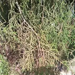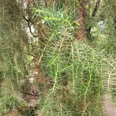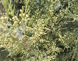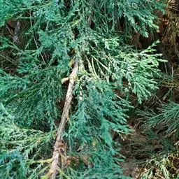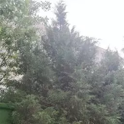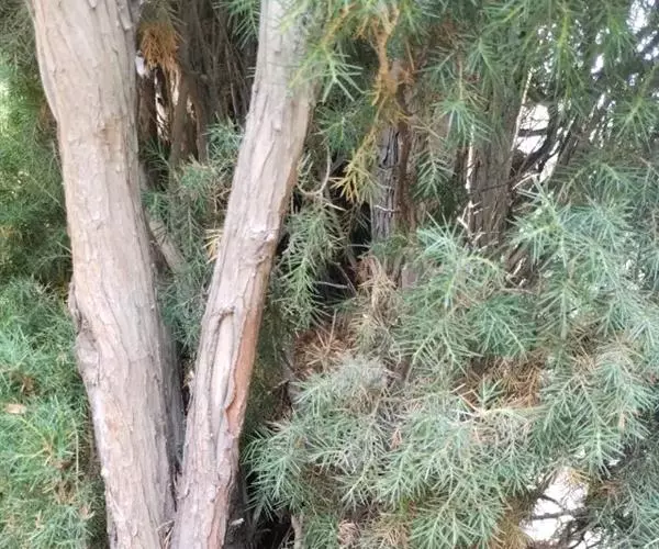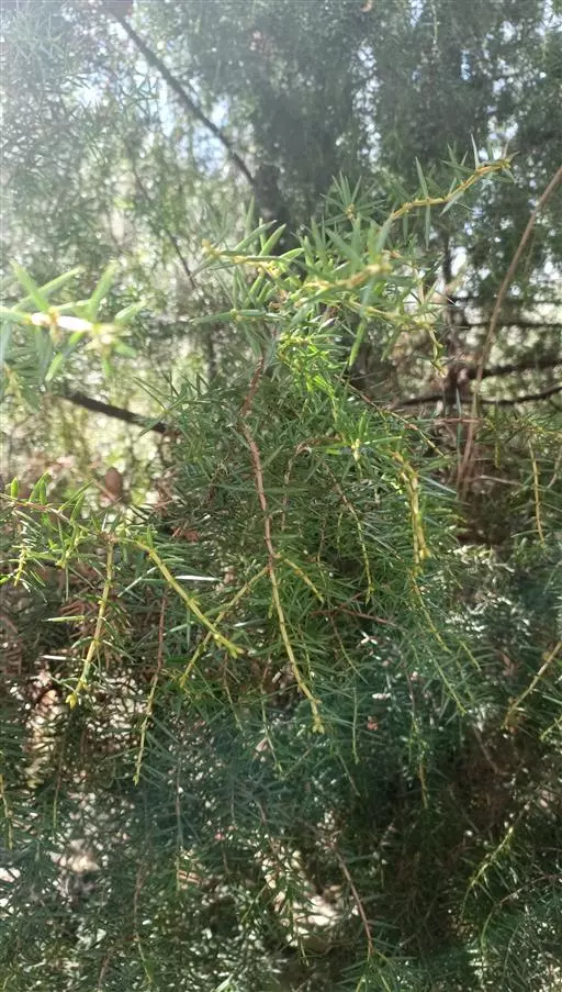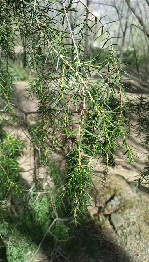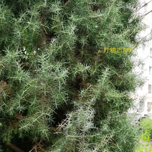 杜松 灌木或小乔木,高达10米;枝条直展,形成塔形或圆柱形的树冠,枝皮褐灰色,纵裂;小枝下垂,幼枝三棱形,无毛。