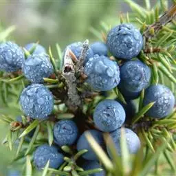 功效作用:杜松有祛风、镇痛、除湿、利尿、补益、和对尿道的强抗菌作用等功效。主治风湿关节痛、痛风、肾炎、水肿、尿路感染等疾病。杜松对霍乱、伤寒热等接触性传染疾病的治疗上扮演着十分重要的角色。在西藏,它被用以防瘟疫;在蒙古,妇女临盆时会以杜松来助产;它也是咬伤的特效药。其次法国医院曾拿杜松的枝条焚烧,以清洁空气。杜松有益于治疗膀胱炎,并有助于消除液体滞留,但在肾病的情况下,应避免使用。它对消化系统有温煦、镇静的作用。可止腹绞痛和扶助胃功能。内服或外用,都有助于治疗慢性关节炎,痛风和风湿疾病。稀释的精华油外用,对皮肤有轻微的温煦作用,它还刺激月经来潮、有增加经血的倾向。