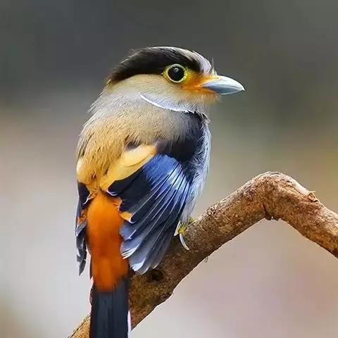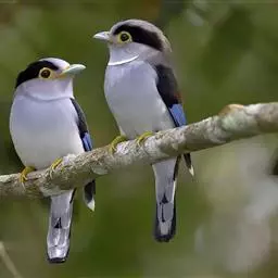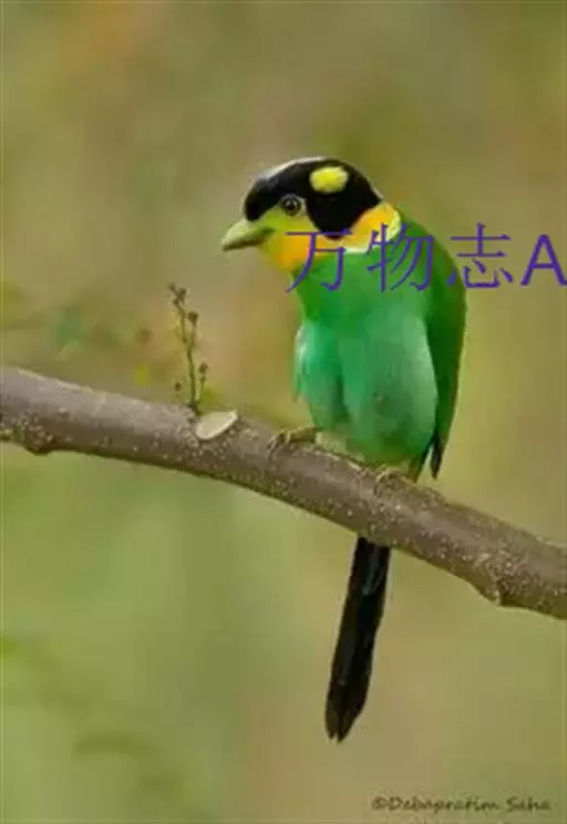 长尾阔嘴鸟是雀形目阔嘴鸟科的鸟类,体长约25厘米,是绿色阔嘴鸟。形长的楔形尾蓝色,喉及脸黄色,顶冠…
