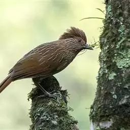 长尾阔嘴鸟(巢) 繁殖期长尾阔嘴鸟筑巢于海拔650米处的沟谷热带雨林中、溪流边的灌丛和矮树上。巢都是由山茅草、草根和藤蔓编织而成。巢形成梨状,系于枝条上,单个垂吊在水面,离水1.2-1.8米,每个巢之间约相距6-12米。巢长32厘米,底宽13厘米,口径6厘米。巢中有卵4-5枚。卵为壳白色,无斑点。