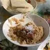 2 等饭快炒好时,加盐和胡椒,最后将切成细丝的芝士倒入锅中,炒均后即可食用。