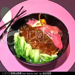 主料:洋葱1个、青椒1个、红烧肉和榨菜各50克,米饭3碗,芝士两片。