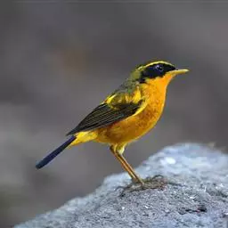 金色林鸲是鹟科、鸲属小型鸟类,体长12-15厘米。头顶至背黄橄榄绿色,眼先和头侧黑褐色,眉纹金橙黄色。…