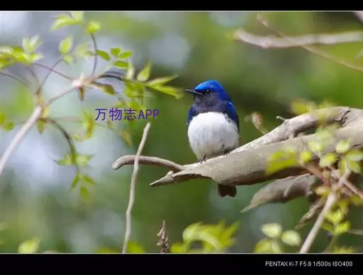白腹蓝鹟(学名:Cyanoptila cyanomelana):体长14-17厘米,小型鸟类。雄鸟头顶钴蓝色或钴青蓝色,其余上体紫蓝色或青蓝色,两翅和尾黑褐色,羽缘颜色同背,外侧尾羽基部白色。头侧、颏、喉、胸黑色,其余下体白色。雌鸟上体橄榄褐色,腰沾锈色,眼圈白色。颏、喉污白色,胸灰褐色,胸以下白色。