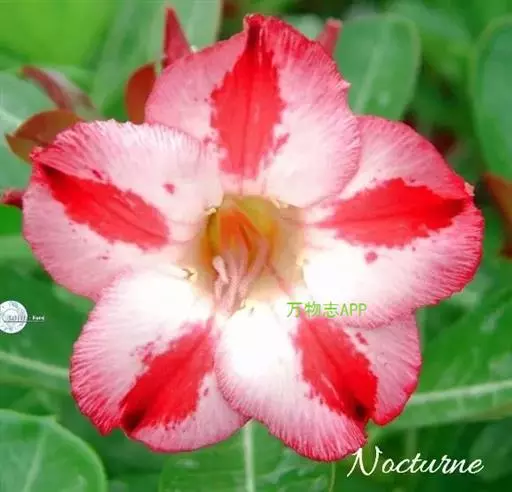 多肉灌木或小乔木,高达4.5m;树干肿胀。单叶互生,集生枝端,倒卵形至椭圆形,长达15cm,全缘,先端钝而具短尖,肉质,近无柄。花冠漏斗状,外面有短柔毛,5裂,径约5cm,外缘红色至粉红色,中部色浅,裂片边缘波状;顶生伞房花序。