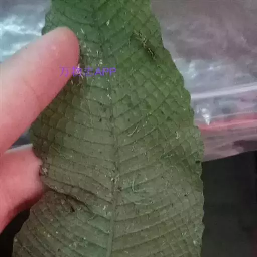叶远生,单叶,二型;不育叶的柄长14-18厘米,粗约1毫米,禾秆色,基部偶有一二鳞片,向上密被钩状短毛,间有针状长毛;叶片长15-20厘米,中部宽4-5厘米,椭圆状披针形,长渐尖头,基部对称,深心脏形,两侧呈圆耳状,边缘全缘或浅波状。叶脉上面可见,斜向上,并行,侧脉间基部有1个近长方形网眼,其上具有两行近正方形网眼。叶干后厚纸质,两面均被钩状短毛,叶轴和叶脉上的毛更密,间有长的针状毛。能育叶远高过不育叶,具长柄(约30-35厘米),叶片长5-10厘米,中部宽8-15毫米,披针形,长渐尖头,基部心脏形,全缘,叶脉同不育叶,被同样的毛。孢子囊群生于小脉上,初为圆形,无盖,成熟时布满整个羽片下面。