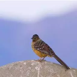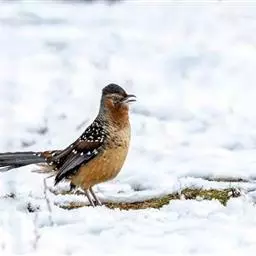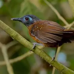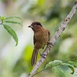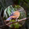 大噪鹛:中型鸟类,体长32-36厘米。额至头顶黑褐色,背栗褐色满杂以白色斑点,…