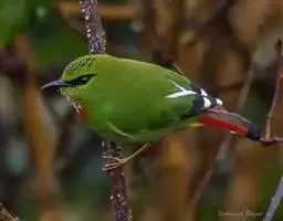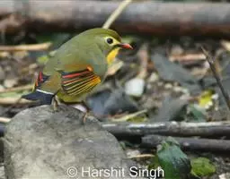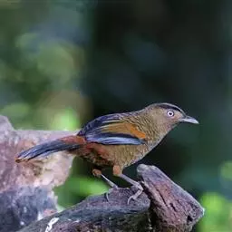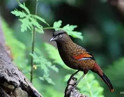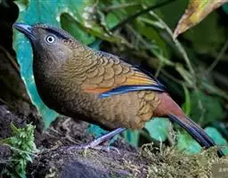 蓝翅噪鹛:噪鹛科、彩翼噪鹛属动物。中型鸟类,体长22-25厘米。上体棕橄榄褐色密被黑色鳞状斑,…