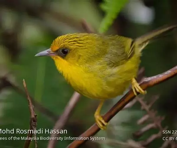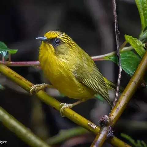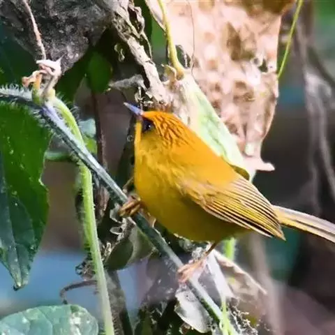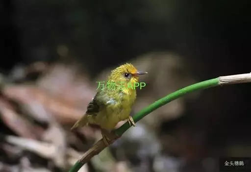 金头穗鹛(学名:Stachyris chrysaea)小型鸟类,体长10~11厘米,是一种黄色小鸟。头顶金黄色有黑色纵纹,眼先黑色,在头、颊和耳羽金黄色的衬托下亦甚醒目。上体橄榄黄色,下体亮黄色,腹和两胁沾绿。