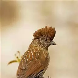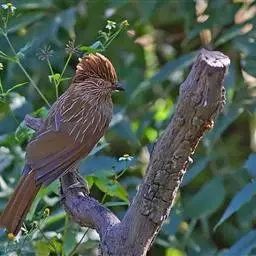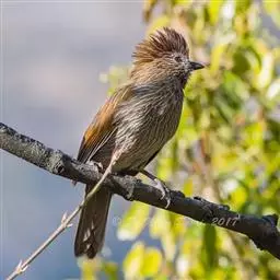 条纹噪鹛是画眉科、噪鹛属中型鸟类,体长28-32厘米。头具短的羽冠,上体栗褐色,飞羽外翻蓝灰色。…