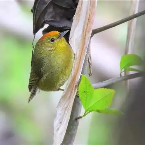 结小群活动于原始林、次生林及松林的低矮树丛的叶间,常与其他种类混群。叫声为非常嘹亮的4~8声低哨音“toot~”,第一声或前两声加重而有停顿;也有群鸟的吱吱叫声。