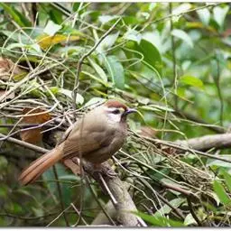 白颊噪鹛是雀形目噪鹛科噪鹛属鸟类,又称土画眉、小画眉、小噪鹃。成鸟额至头顶栗褐色,…
