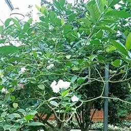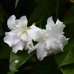 狗牙花 R. Br. ex Roem. & Schult.)是夹竹桃科山辣椒属灌木植物;枝灰绿色;叶椭圆形或椭圆状长圆形,叶面深绿色,背面淡绿色,叶面扁平;花聚伞花序腋生,通常双生,萼片长圆形,边缘有缘毛,花冠白色;果长圆形;花期六至十一月;果期秋季。狗牙花因其花冠裂片边缘有皱纹,状如狗牙,故名。狗牙花原产于印度及中国云南,在广西、广东、台湾及亚洲热带和亚热带等地区广泛栽培。狗牙花喜温暖湿润,不耐寒,宜半阴,对土壤要求不严,喜肥沃、排水良好的酸性土壤,常生长于山地灌木丛中。狗牙花的主要繁殖方式为扦插。狗牙花味酸、凉,有清热降压、解毒消肿的功效,可用于治疗咽喉肿痛,跌打损伤。狗牙花枝叶茂密,株型紧凑,花朵净白素丽,典雅朴质,盛花时十分美观,且花期长,具有一定观赏价值。狗牙花还有较高的经济价值,园林中应用极为普遍,可丛植于林缘、路