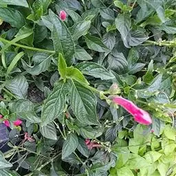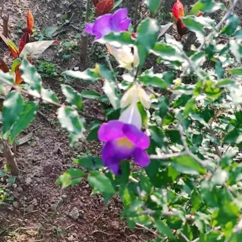 红花山牵牛是爵床科,山牵牛属植物。茎及枝条具明显或不太明显的9棱,初被短柔毛,后仅节处被毛,余无毛…