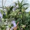 色萼花墨线图 灌木。高0.5-3米,茎纤细,少分枝,圆柱形,无毛,节间延长。叶不等大,叶柄1-2.5厘米,叶片长10-16厘米,宽3-4厘米,倒披针形或披针形,顶端稍长渐尖,基狭楔形,全缘,稍波状,两面无毛,侧脉6-9对。聚伞圆锥呈穗状花序,有分枝,长3厘米。花对生或2-3朵聚成聚伞花序;苞片矩圆状披针形或宽披针形,长3-9毫米,宽1-3毫米,顶端短渐尖,被腺状短柔毛,中肋及侧脉明显,小苞片与苞片相似,较小,长4-9毫米,宽0.7-1.2毫米;花梗长1-5毫米;花萼约长1-1.6厘米,外被腺毛,内被柔毛,后方裂片披针形较宽,两侧的线状披针形,前方的稍宽,约宽1-1.5毫米,明显具脉,前方一对裂片通常在其长2/3处多少联合。花冠2唇形,白色,带粉红色点到紫色的点,约长2.5厘米,外被长柔毛,冠管狭处柱形,约长9毫米,里面光滑,膨大处长1.5厘米,里面光滑,后方2冠檐裂片在其一半处联合,前方3枚分离;雄蕊4,而强,内藏,着生于花冠扩大部的基部,花丝长1-1.2厘米,无毛,花药略白色,药室边缘和顶端有短毛,基部具双距。子房顶端有毛,花柱长2.5厘米,基部有微柔毛。蒴果1.2-1.6厘米,具圆形,顶端稍被微柔毛或光滑。种子4,压扁,圆形,具短毛。