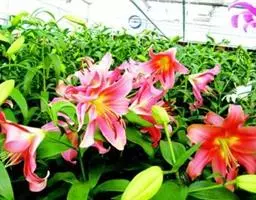 亚洲百合,百合科百合属植物。多年生草本,高30~60厘米。鳞茎卵球形。总状花序,花漏斗状,朝上开放,…
