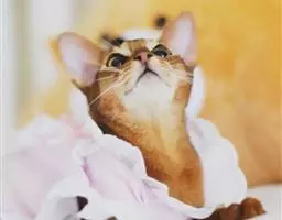 5.用羚羊皮擦洗猫皮,进一步除去表面的脏东西。此外,经常抚摸并且坚持健康的饮食也会使皮毛漂亮。