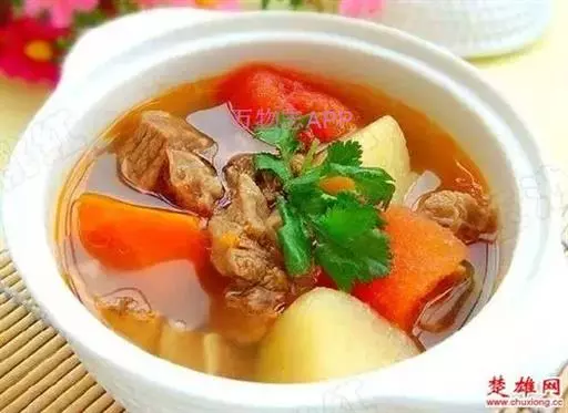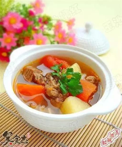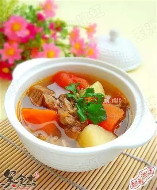 番茄500克、薯仔(土豆)400克、鸡蛋2只、金华火腿50克、生姜3片、牛尾1条、盐少许