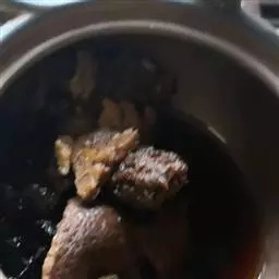 6、煮大约一个半钟头,汤减少了。