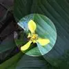 黄花鸢尾(学名:Iris wilsonii C. H. Wright):多年生草本,植株基部有老叶残留的纤维。根状茎粗壮,斜伸;须根黄白色,少分枝,有皱缩的横纹。叶基生,灰绿色,宽条形,有3-5条不明显的纵脉。花茎中空,高50-60厘米,有1-2枚茎生叶;苞片3枚,草质,绿色,披针形,内包含有2朵花;花黄色,直径6-7厘米;外花被裂片倒卵形,具紫褐色的条纹及斑点,爪部狭楔形,内花被裂片倒披针形,花盛开时向外倾斜。蒴果椭圆状柱形,6条肋明显,顶端无喙;种子棕褐色,扁平,半圆形。花期5-6月,果期7-8月。