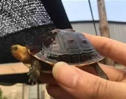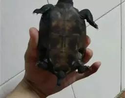 刚孵化的幼龟,背甲棕黑色,具3棱,脊棱明显,其色较浅,侧棱较弱。腹甲黄白色,两腹侧各具一条明显的纵棱;脐孔位于腹盾和股盾间缝的中央部。