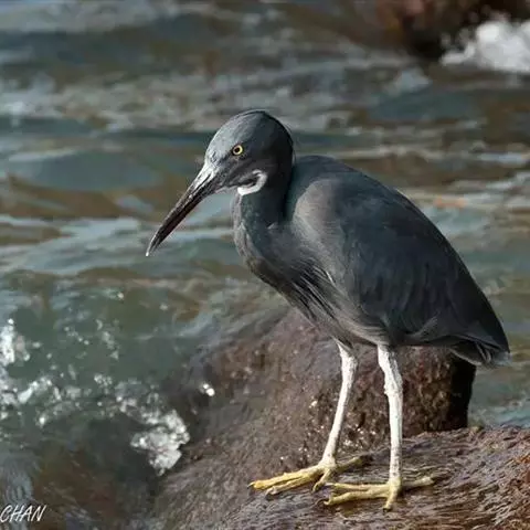 在繁殖期枕后长出两根别致的白色长翎羽。该鸟喙是深橄榄绿色,眼睛黄色。幼鹭身上有各种颜色的条纹如