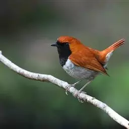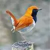 赭红尾鸲:小型鸟类,体长13-16厘米。雄鸟前额、头侧、颈侧、颏至胸概黑色,头顶和背灰色或黑色,…