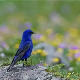 蓝大翅鸲是鹟科、大翅鸲属小型鸟类,体长19-21厘米。两翅尖长。雄鸟通体鲜紫蓝色具金属光泽。…