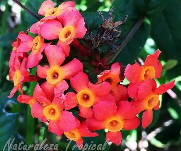 郎德木终年常绿,枝叶扶疏、披散,花团锦簇,花期长,从夏季到秋末可不断开花,花橙色、艳丽,极富异国情调。主要用于布置花池、墙隅,丛植或作花篱栽培。